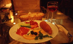 まず、どうやって食べる店を探すかというと、知り合いひとりもいない街で頼りになるのはガイドブック以外にありません。旅行に行く度いろんな出版社のガイドブックをなんとなく買っていましたが、95年頃からはもっぱら『地球の歩き方』。これがいちばん細かくて情報がリアルな気がします。今回も『地球の歩き方・シベリア』を持って、まずそこに載っているレストランを目指します。で、その店を見つけるとそのまま入るのではなく、その界隈をうろうろして他にどのようなレストランがあるのかを見て歩きます。多くの場合、ガイドブックに載っているレストランは街の中心地・繁華街にあるので、その近辺で少なくても2・3軒はみつかりますが、しかし特にロシアは外から内部が見える作りの店が少なく、どうあれ実際に入ってみて食べてみないことにはわからないことはわかっているので、なんとなくアテズッポで入ります。